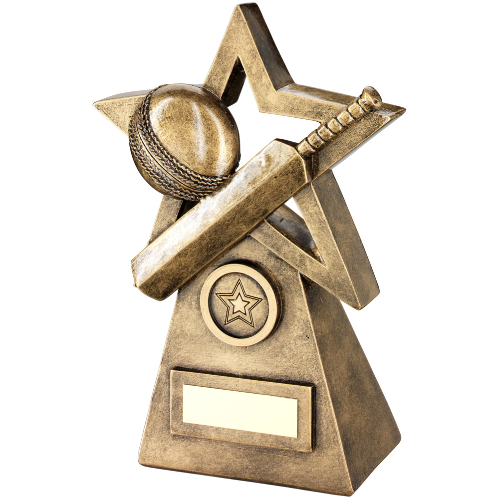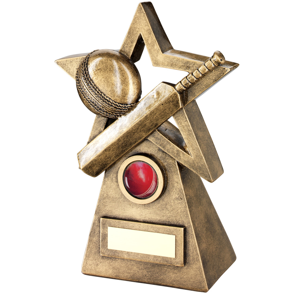 CRICKET BALL/BAT ON STAR AND PYRAMID TROPHY