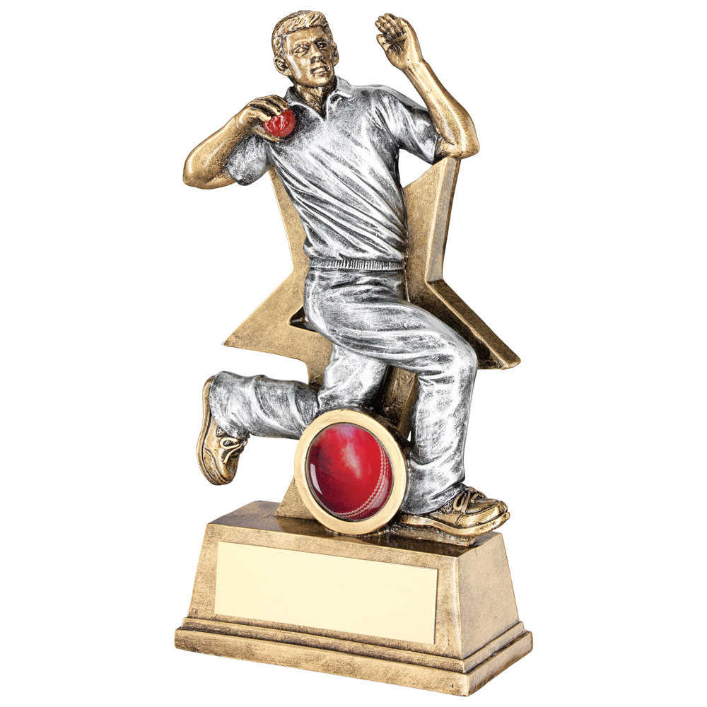 CRICKET BOWLER FIGURE WITH STAR BACKING TROPHY
