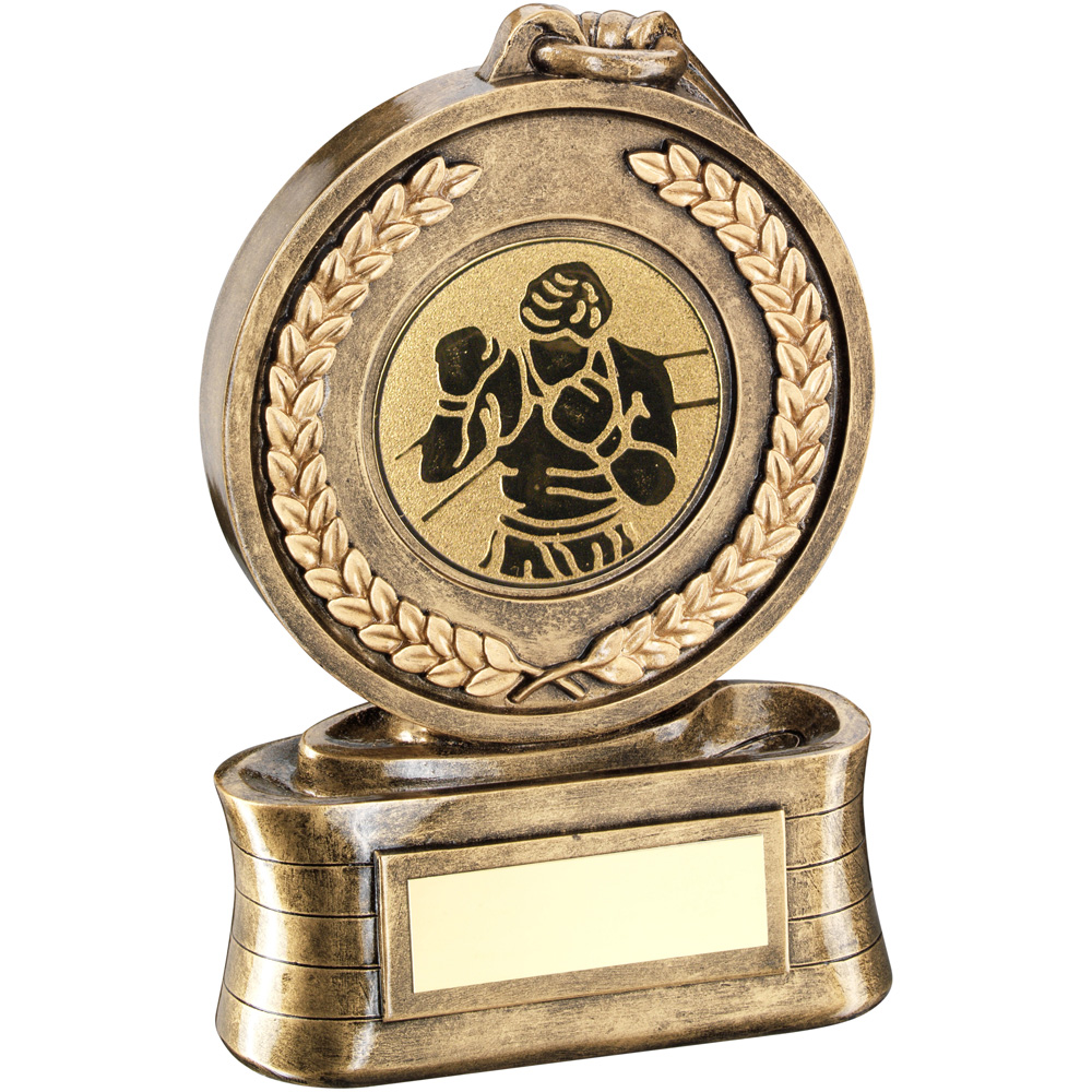 MEDAL AND RIBBON WITH BOXING INSERT TROPHY