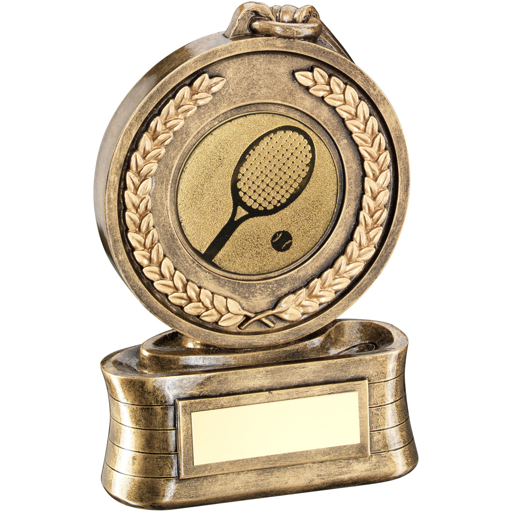 MEDAL AND RIBBON WITH TENNIS INSERT TROPHY